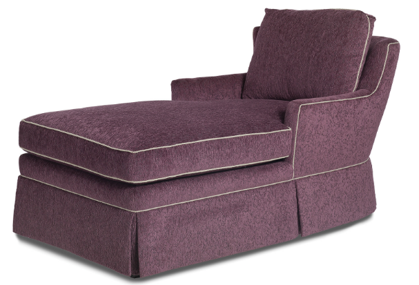 This Kate Chaise with Skirt was photographed in Balkin Grape with contrasting welt in Pebble Mini Cord. Available in your choice of fabric and wood finish.Read More
